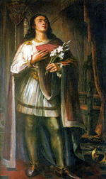Żywot Świętego KazimierzaUrodził się 3 października 1458 r. w Krakowie na Wawelu jako syn królewski z rodu Jagiellonów. Rodzicami jego byli król Kazimierz Jagiellończyk i Elżbieta Rakuska. Wychowywany w krakowskim grodzie pod kierunkiem historyka ks. Jana Długosza w duchu głębokiego patriotyzmu i religijności. Od dzieciństwa żywił gorące nabożeństwo do Najświętszego Sakramentu i Matki Bożej. Jemu przypisywano autorstwo pieśni maryjnej "Dnia każdego Boga mego Matkę duszo wysławiaj". Nie jest ono jednak pewne. Posiadane duże zdolności, zdobyte wszechstronne wykształcenie, duże umiejętności jednania ludzi dysponowały młodego królewicza do szybkiego zaangażowania przez ojca w sprawy państwowe i dynastyczne. Angażowanie przez ojca w zarządzanie krajem i sprawy ojczyźniane nie nęciło zbytnio królewicza. Nawet pozostając w kontakcie z doradcami królewskimi zwłaszcza z humanistą Kallimachem i Piotrem z Bnina nie rozbudził zainteresowań politycznych.